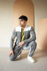 Modern design details with three-tone fabric add a unique edge to your activewear wardrobe.